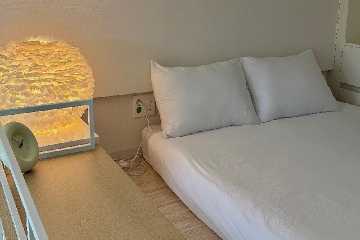 这是一间可以同时享受开阔的海景和特别的空间、悠闲的休息和投入感十足的游戏。可住2人,含一张1.31-1.5米的双人床、客厅兼厨房、浴室,面积22平方米。