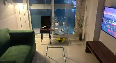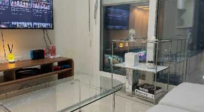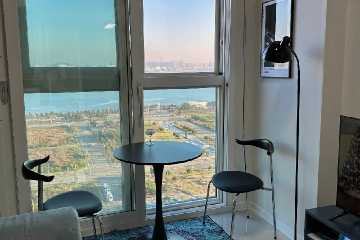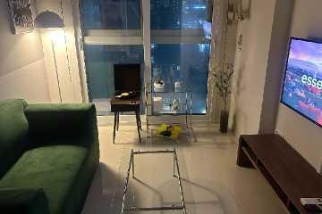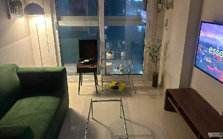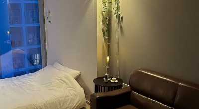 这是一间精致设计与城市景观相结合的悠闲空间,可住3人,含一张1.31-1.5米的双人床、一张0.9-1.4米的小型双人床、客厅兼厨房、浴室,面积22平方米。