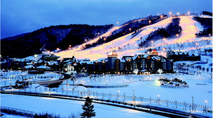 Alpensia度假村由华纳兄弟电影世界、环球影城等全球著名主题公园的设计公司卡尼海姆集团进行规划设计。Alpensia是结合德语“Alpen”和亚洲"AISA”而组成,具有幻想的亚洲阿尔卑斯之意。占地148万坪的度假村内设有871间客房,高尔夫球场,会议中心,水上乐园,滑雪场等重要设施,并且还在此成功举办过“2008平昌滑雪射击世界杯”,还是一处可以感受到大关岭美丽自然景观的四季复合型观光度假村。