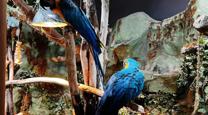 进去之后会见到一些生活中不常见的动物,比如这只金刚鹦鹉,身上的羽毛五彩斑斓,一般花鸟市场里也很少见。属于大型类鹦鹉,拥有百毒不侵的技能,还会模仿人类说话,咬合力极强,大多分布在南美洲热带雨林地区。
