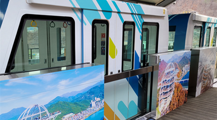 在森林里乘坐960米长的单轨电车,最大时速达到40公里。