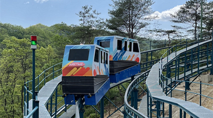 高山滑车的干式滑盖与水上滑盖不同一年四季都可使用,以每小时30公里的速度下降,可以体验到刺激感。在海拔250米的万天河滑道出发场,可以充分享受秀丽的南汉江美景。